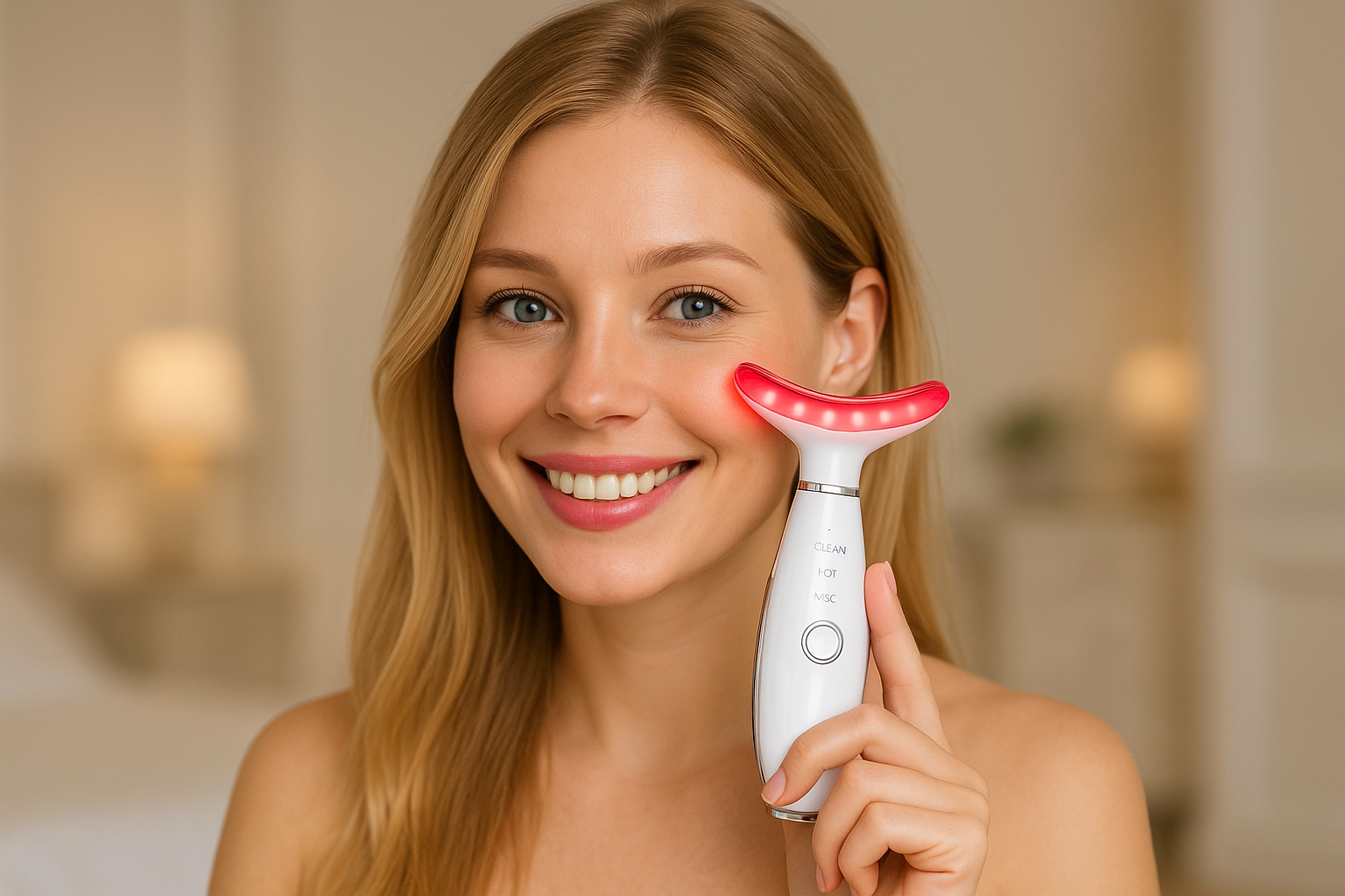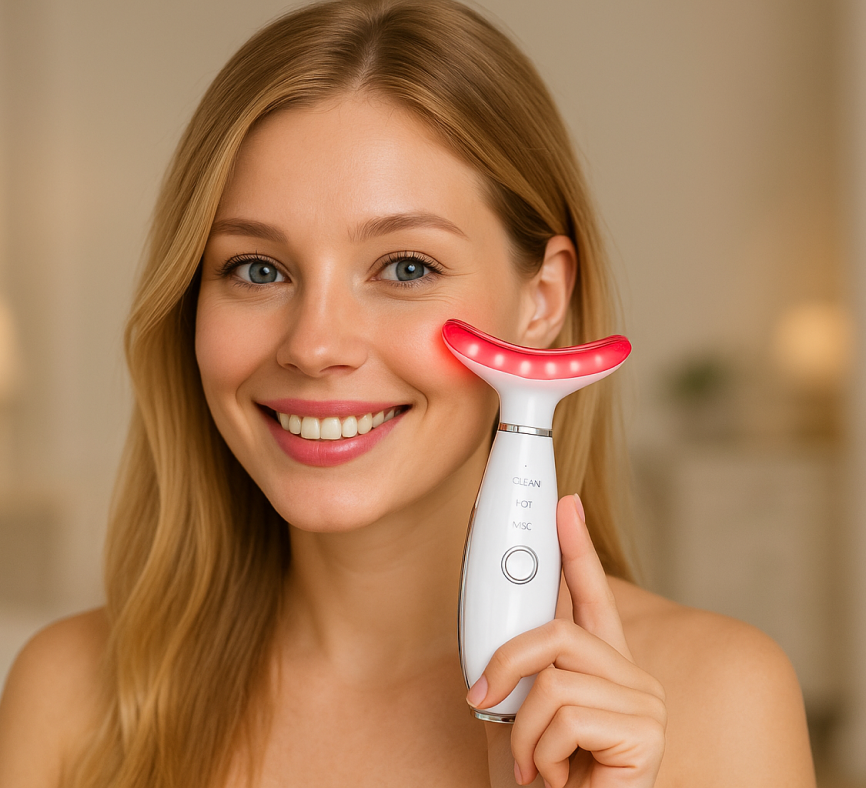 The combination of heat therapy and LED light (green, blue, hot mode) stimulates collagen production, improves blood flow, and promotes a healthier, glowing complexion.