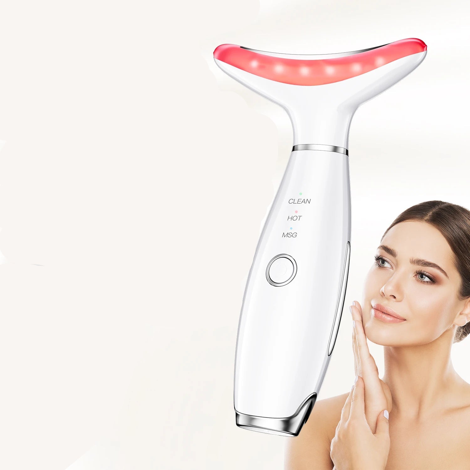 Elevate your skincare routine with this advanced multifunctional beauty device designed for targeted care of the neck, face, and other body areas. Combining ultrasonic vibration, EMS microcurrent, therapeutic light therapy, and a gentle heating function, it offers a comprehensive solution to rejuvenate and firm your skin. The three-color LED system provides tailored treatment—green for calming and circulation, blue for pore tightening, and red for collagen stimulation and wrinkle reduction. Intelligent sensors, a comfortable ergonomic handle, and a design that perfectly contours to the neck make this device a standout in at-home skincare technology.